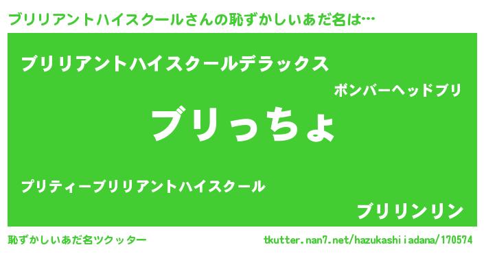 | 男性向けラノベタイトル風あだ名 | 『やはりブリリアントハイスクールの青春ラブコメはまちがっている 』 |