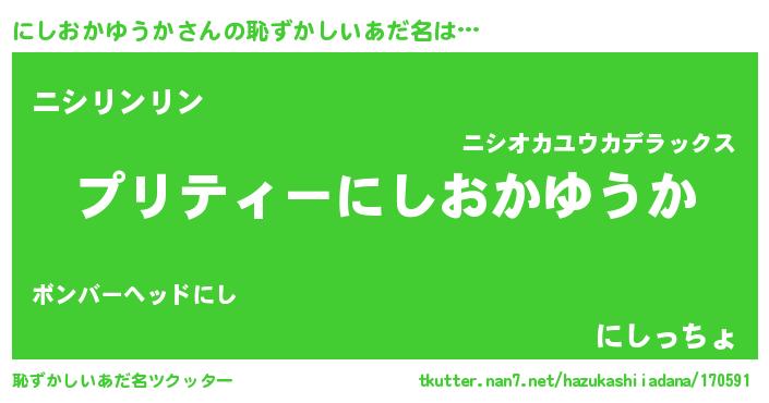 | 胡散臭い通販商品みたいなあだ名 | 『億万長者になれる霊験あらたかなお札…その名も「にしおかゆうか」』 |