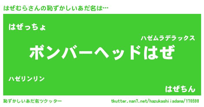 | ヒーロー風カッコイイあだ名 | 『天空の使者はぜむら』『ネオハゼムラ』 |