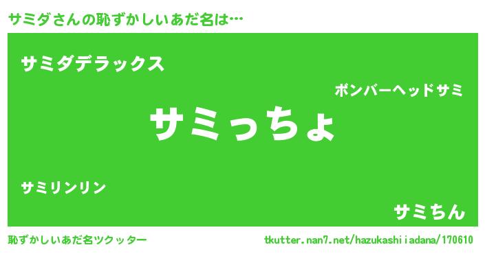| 意味不明あだ名 | 『サミダフォーエバー』『自称サミダ』 |