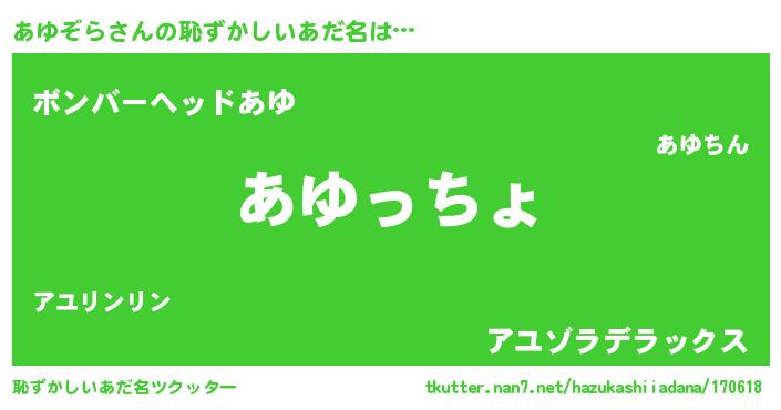 | 意味不明あだ名 | 『あゆぞらフォーエバー』『自称あゆぞら』 |