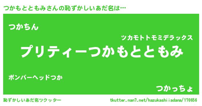 | 意味不明あだ名 | 『住所不定無職つかもとともみ(85歳)』 |