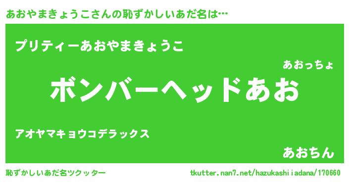 | ヘコむあだ名 | 『あおっふぃ~』『あおやまきょうこ(爆)』 |