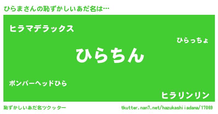 | 意味不明あだ名 | 『住所不定無職ひらま(79歳)』『自称ひらま』 |