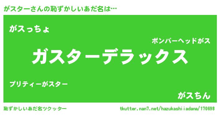 | ヒーロー風カッコイイあだ名 | 『最強戦士ガスター』『仮面ガスダー』 |