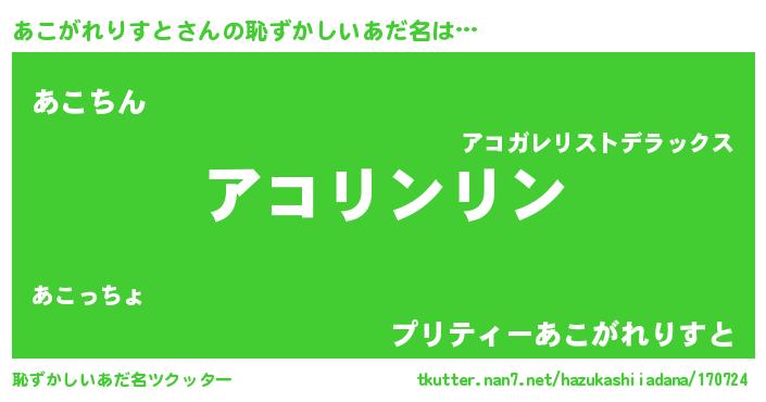 | ポケモン風あだ名 | 『アコキング』『ヒアコガレリスト』 |