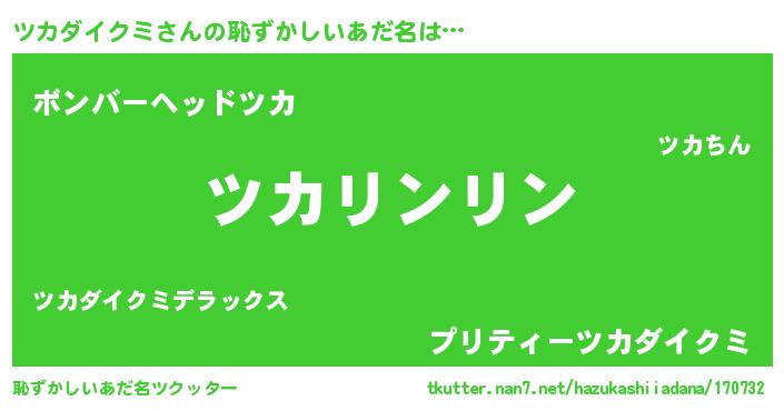 | ポケモン風あだ名 | 『ツーカイ』『ヒツカダイクミ』 |