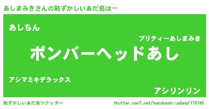 | ヘコむあだ名 | 『あしまみき(小並感)』『あしぷりん』 |