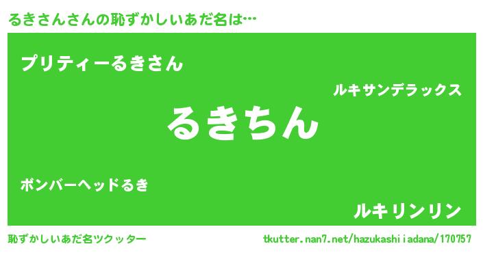 | ヘコむあだ名 | 『るきさん(小並感)』『るきっふぃ~』 |