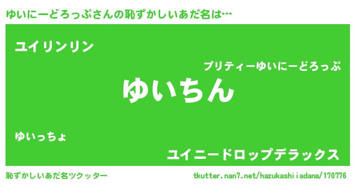 | ヘコむあだ名 | 『ゆいにーどろっぷ(笑)』『ゆいっ子』 |