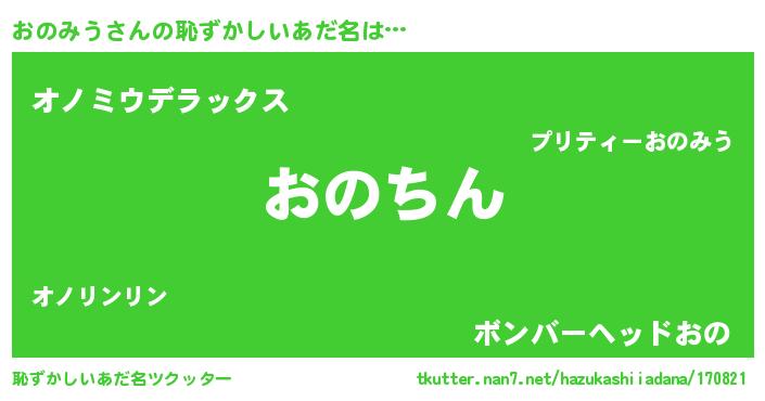 | 男性向けラノベタイトル風あだ名 | 『この素晴らしい世界におのみうを!』 |