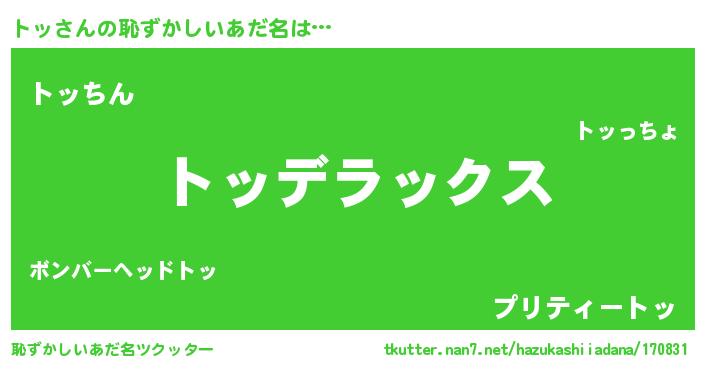| ヘコむあだ名 | 『トッ(爆)』『トッにゅー』『トッを』 |