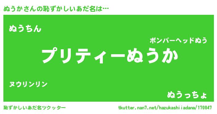 | ヘコむあだ名 | 『ぬうふぇ~』『ぬうか(笑)』『牛乳』 |