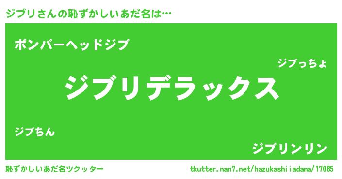 | 女子向けラノベタイトル風あだ名 | 『乙女ゲームの破滅フラグしかない悪役ジブリに転生してしまった…』 |
