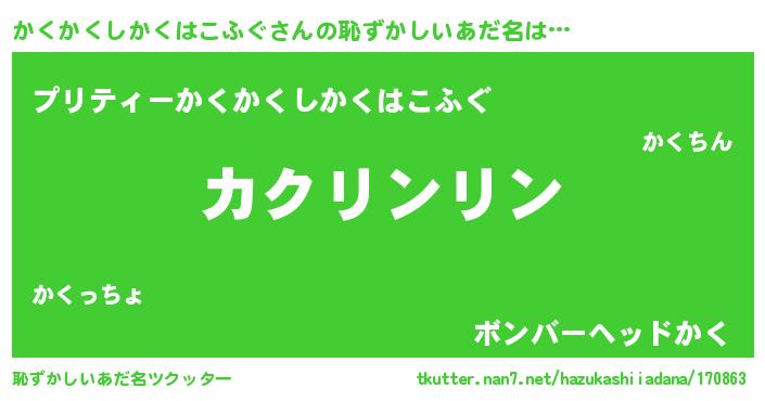 | 女子向けラノベタイトル風あだ名 | 『かくかくしかくはこふぐは平凡を望む』 |