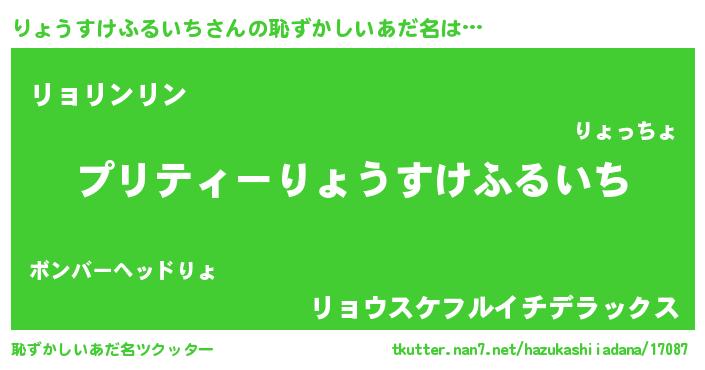 | 男性向けラノベタイトル風あだ名 | 『りょうすけふるいちの憂鬱』 |
