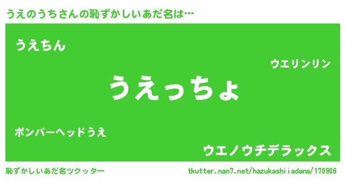 | 男性向けラノベタイトル風あだ名 | 『ウエノウチスレイヤー』 |