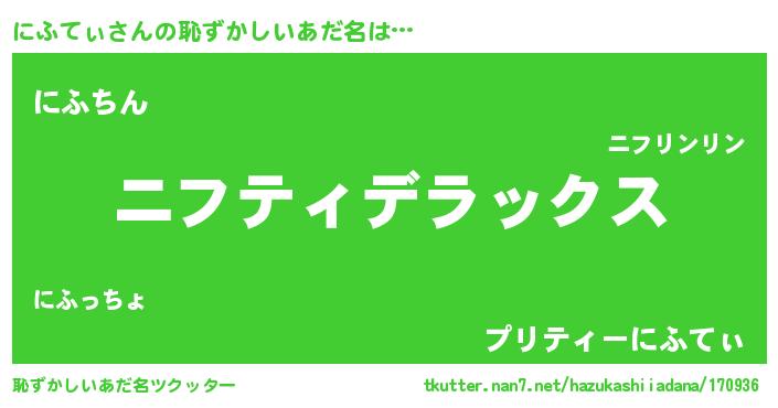 | ヘコむあだ名 | 『にふてぃ(遠い目)』『にふっふぃ~』 |