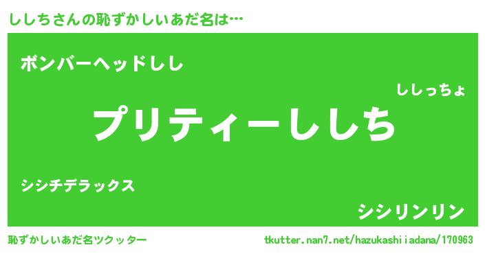 | 男性向けラノベタイトル風あだ名 | 『緋弾のシシチ』『ししちの憂鬱』 |