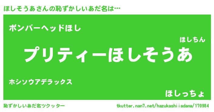 | 意味不明あだ名 | 『住所不定無職ほしそうあ(13歳)』 |