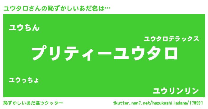 | 意味不明あだ名 | 『ペロリンユウタロ』『永久保存ユウタロ』 |
