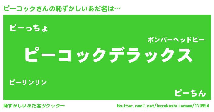 | 男性向けラノベタイトル風あだ名 | 『ピーコックスレイヤー』 |