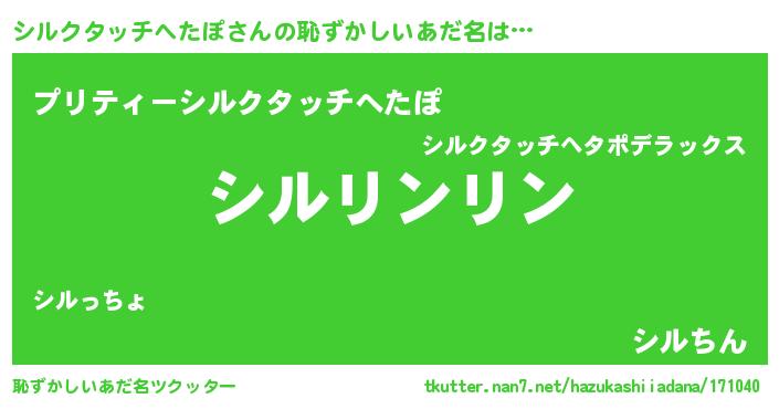 | ポケモン風あだ名 | 『ヒシルクタッチヘタポ』『シルキング』 |