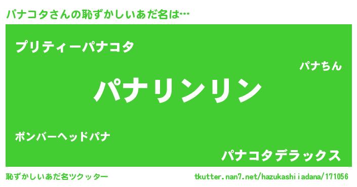 | 意味不明あだ名 | 『とにかく怪しいパナコタ』 |