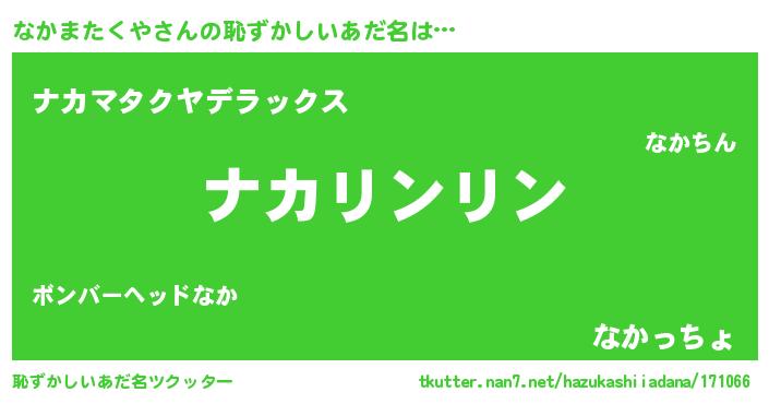 | 意味不明あだ名 | 『住所不定無職なかまたくや(8歳)』 |