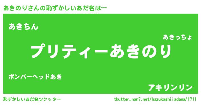 | 男性向けラノベタイトル風あだ名 | 『緋弾のアキノリ』『あきのりの憂鬱』 |