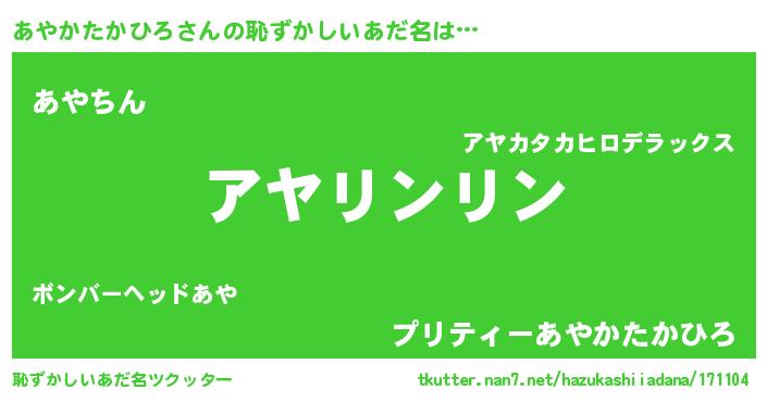 | 欧米人風あだ名 | 『ダレノガレあやかたかひろ』 |