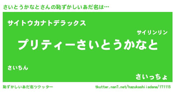 | 男性向けラノベタイトル風あだ名 | 『さいとうかなとに滅ぼされるだけの簡単なお仕事です』 |