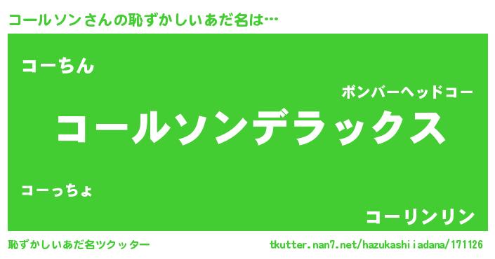| 意味不明あだ名 | 『自称コールソン』『永久保存コールソン』 |