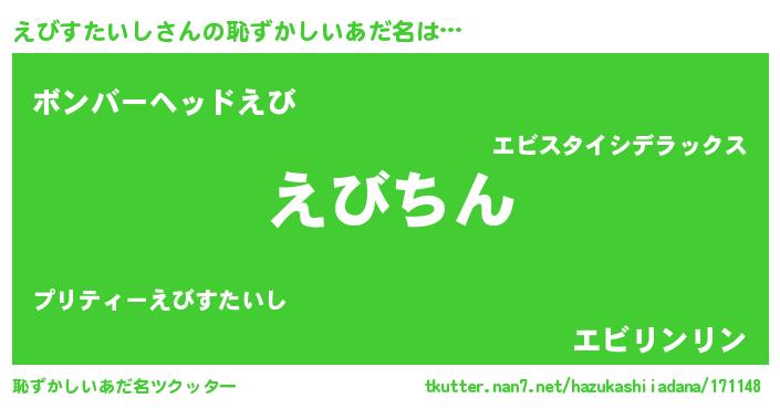 | ヘコむあだ名 | 『えびすたいし(小並感)』『えびっ子』 |