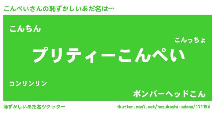 | ヘコむあだ名 | 『こんにゅー』『こんぺい(笑)』 |