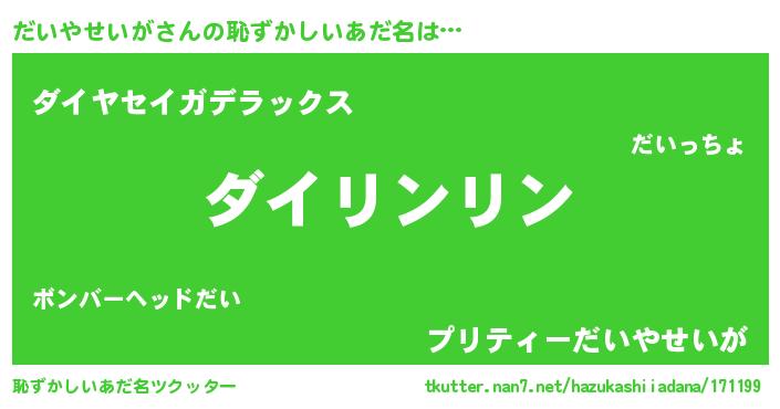 | 欧米人風あだ名 | 『ウサインだいやせいが』 |