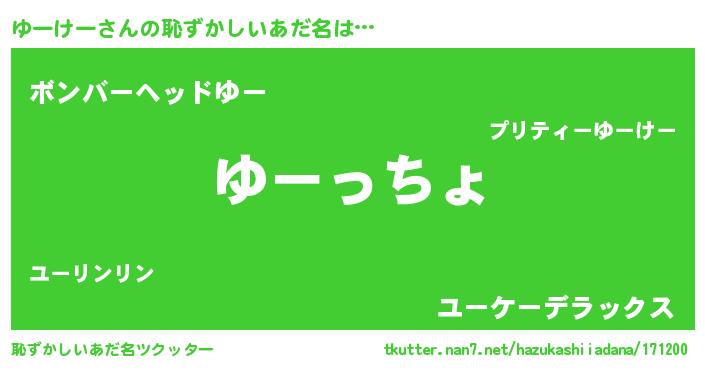 | 意味不明あだ名 | 『ゆーけーフォーエバー』『自称ゆーけー』 |