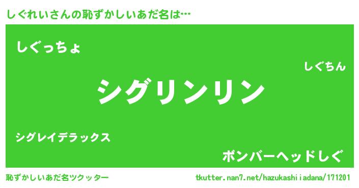 | 意味不明あだ名 | 『とにかく怪しいしぐれい』 |