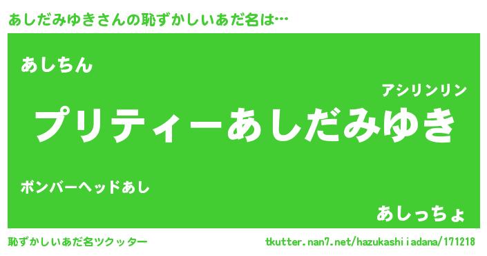 | 意味不明あだ名 | 『ペロリンあしだみゆき』 |