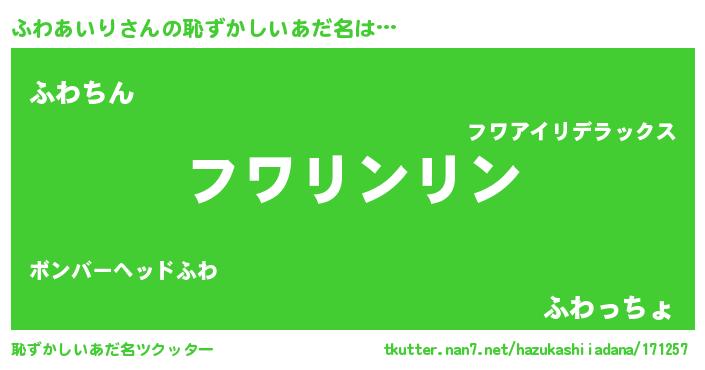 | ヘコむあだ名 | 『ふわっぺ』『ふわあいり(遠い目)』 |