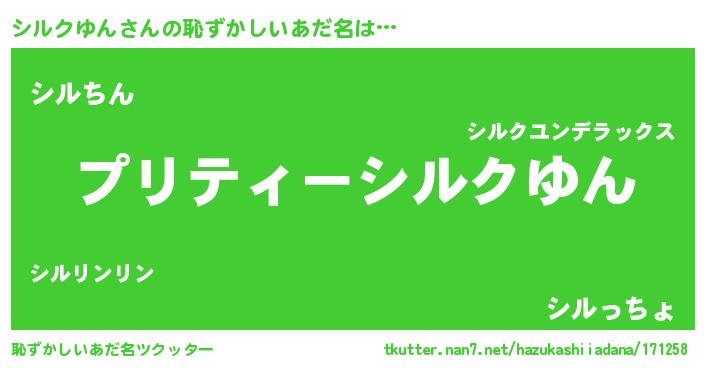| 胡散臭い通販商品みたいなあだ名 | 『億万長者になれる霊験あらたかなお札…その名も「シルクゆん」』 |