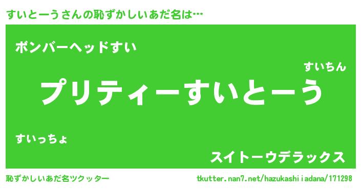| 意味不明あだ名 | 『ペロリンすいとーう』『自称すいとーう』 |