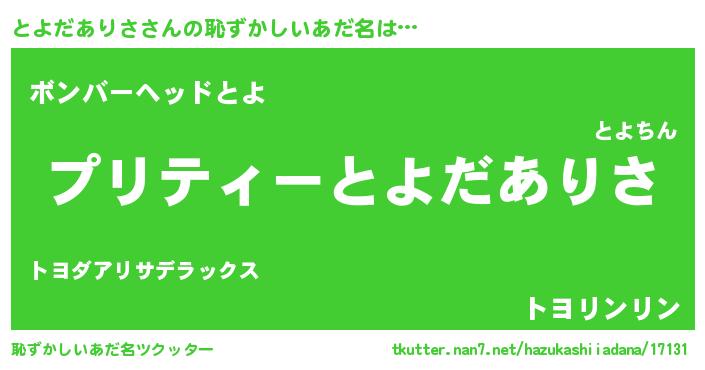 | ヒーロー風カッコイイあだ名 | 『スーパートヨダアリサ』『幻影騎士トヨ』 |