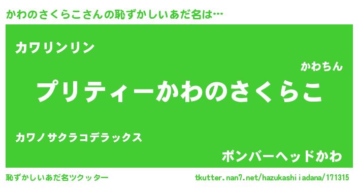 | ヒーロー風カッコイイあだ名 | 『スーパーカワノサクラコ』 |