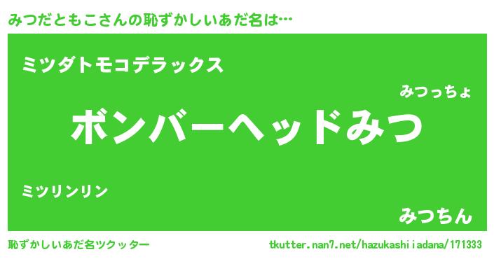 | ヘコむあだ名 | 『みつだともこ(笑)』『つくし』 |