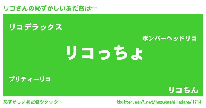 | 男性向けラノベタイトル風あだ名 | 『この素晴らしい世界にリコを!』 |