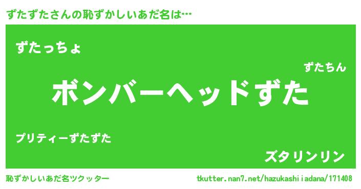 | ヒーロー風カッコイイあだ名 | 『正義の使者ずたずた』『魔戒騎士ズタ』 |