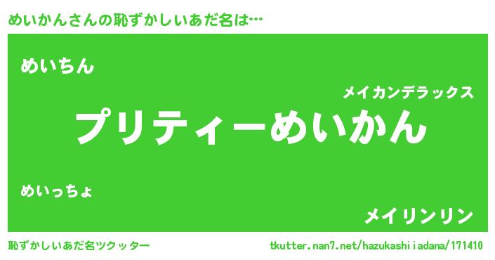 | ポケモン風あだ名 | 『メイチュウ』『ゼニメイ』 |
