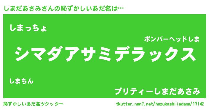 | ヒーロー風カッコイイあだ名 | 『仮面シマダー』『スーパーシマダアサミ』 |