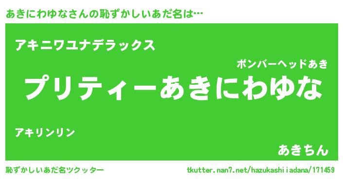 | 男性向けラノベタイトル風あだ名 | 『転生したらあきにわゆなだった件』 |
